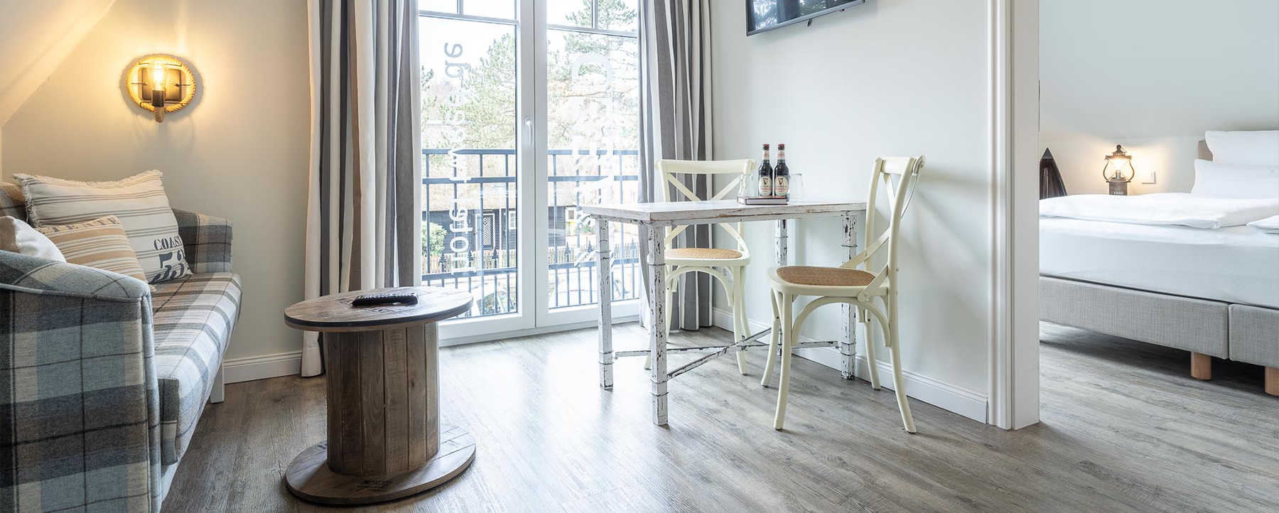 Hier spürt ihr die Nähe zum Meer ganz besonders gut. Kleine maritime Anspielungen in Einrichtung und Dekoration unserer Suite Nauty Bits bringen euch direkt in die perfekte nautische Stimmung. Und keine Sorge: seekrank wird hier keiner, höchstens seh-süchtig. Freut euch auf euren Aufenthalt bei Tweed in Sankt Peter-Ording.